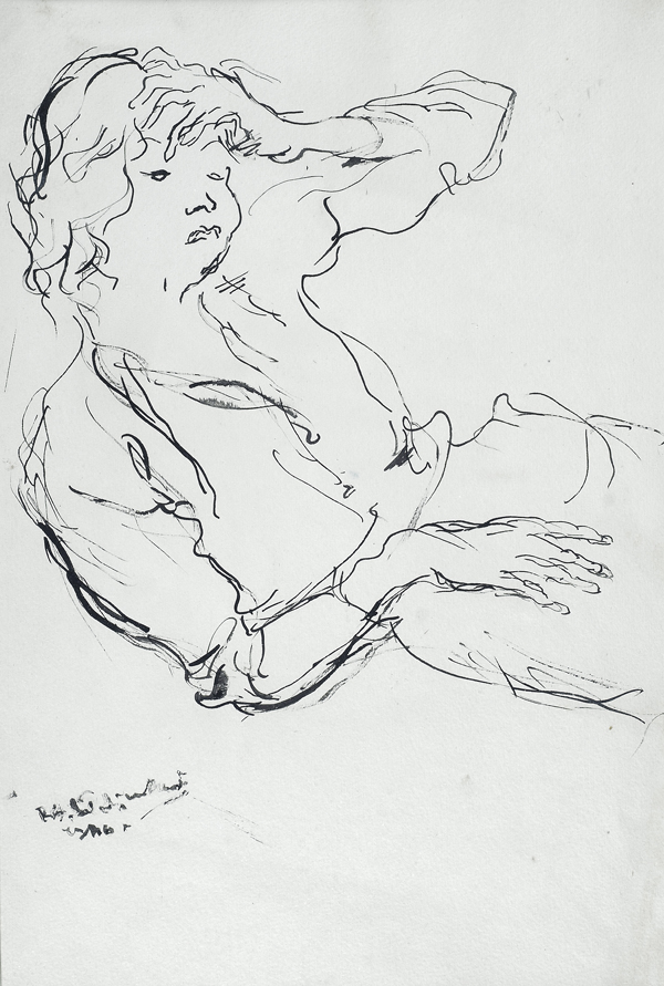 Raffaello Arcangelo Salimbeni (Firenze, 1914 - 1991) Figura di donna, 1946 China su carta, cm. 30x20 Firma e data in basso a sinistra. € 350/450