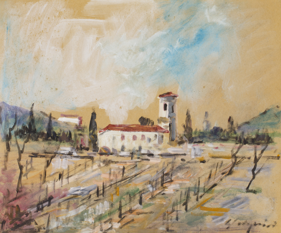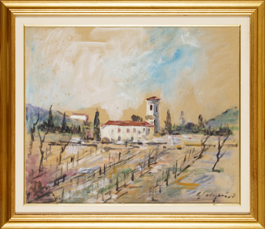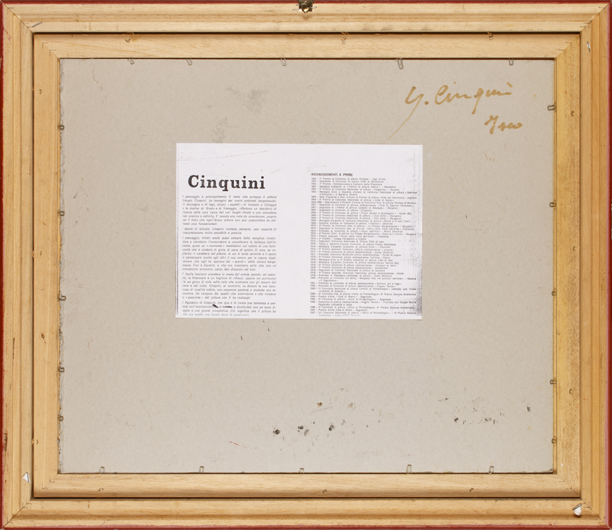 Lot 554 | GIORGIO CINQUINI (?-2010)Senza TitoloOlio su cartonecm 50x60Firma al fronte