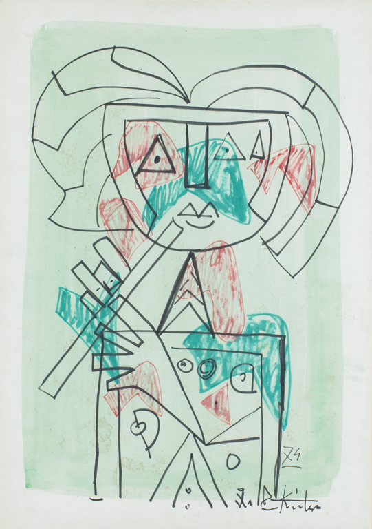 IBRAHIM KODRA (1918-2006)Testa, 1974Tempera su carta intelatacm 70x50Firma e...