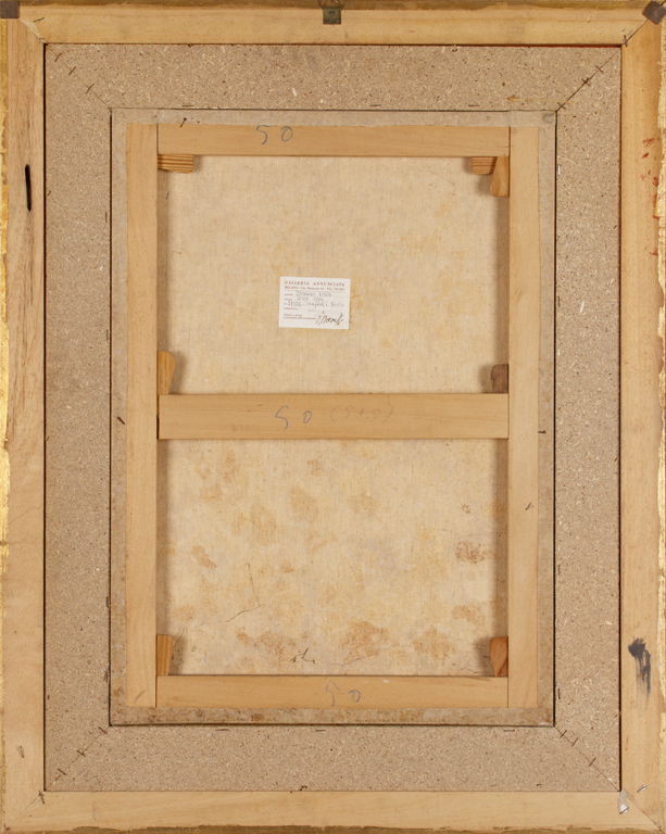 Etichetta della Galleria Annunciata (MI) con relativo numero di inventario e firma di Bruno Grossetti al retro