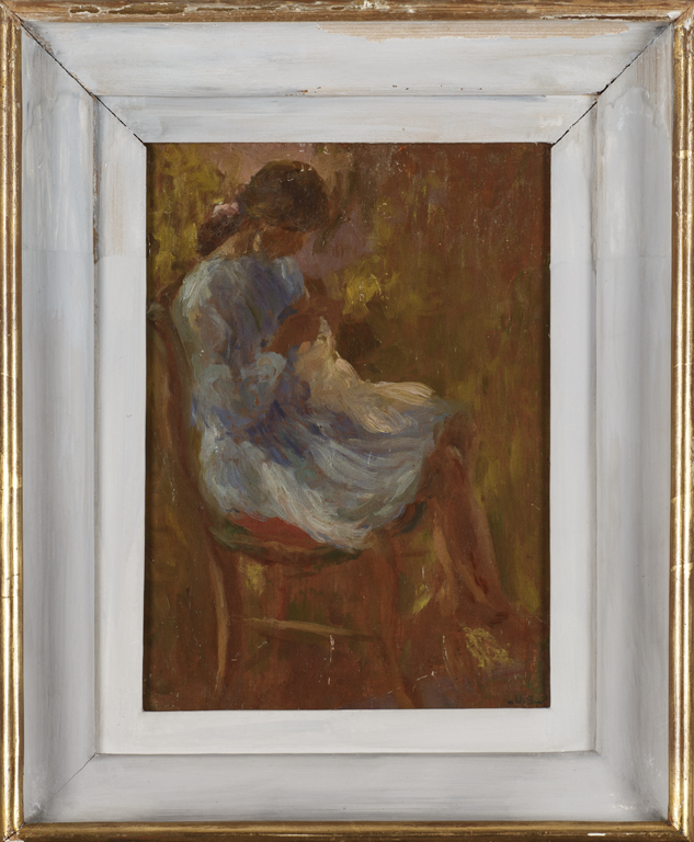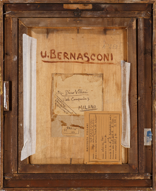 UGO BERNASCONI (1874-1960)Bimba che ricamaOlio su tavolacm 31x23Firma al...