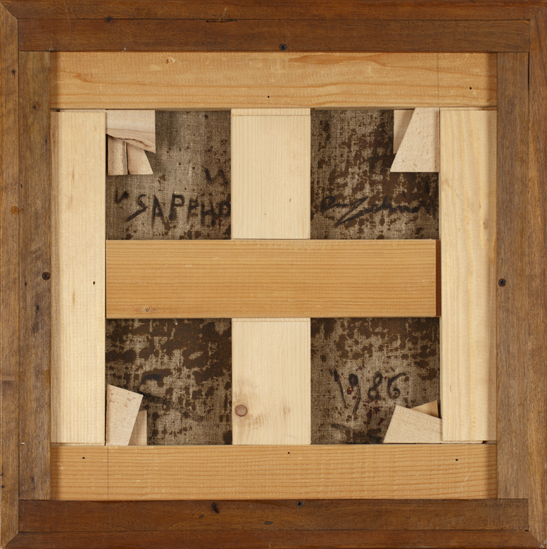 OMAR GALLIANI (1954)Sappho, 1986Olio e tecnica mista su telacm 45x45Firma,...