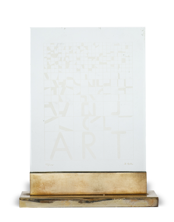 BRUNO DI BELLO (1938)Costruzione, 1974Lastra di cristallo incisa poggiante su...