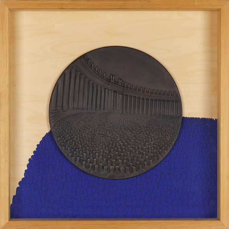 MARIO CEROLI (1938)C'eravamo tuttiBassorilievo in ottone (diametro 30 cm) su...