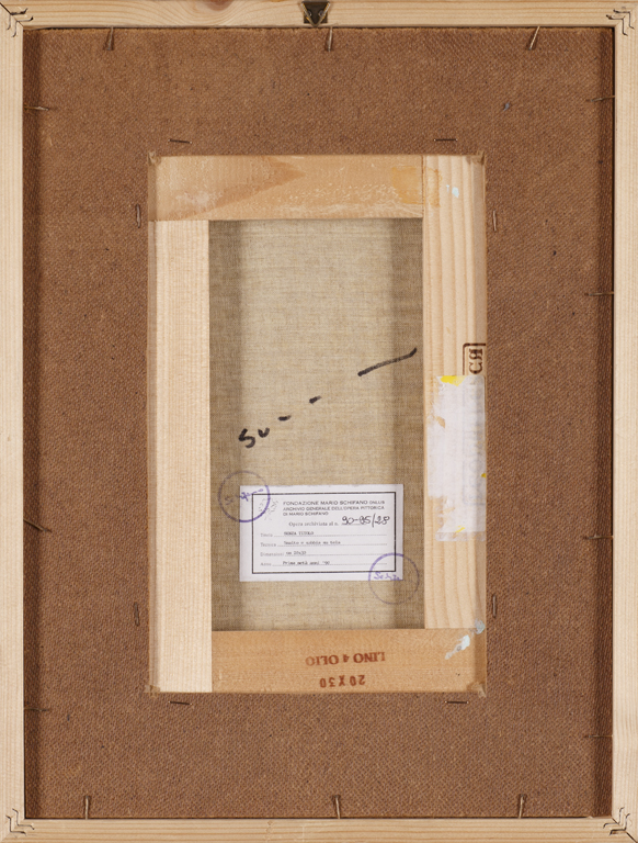 Etichetta e timbri dell'Archivio Generale dell'Opera Pittorica di Mario Schifano al retro