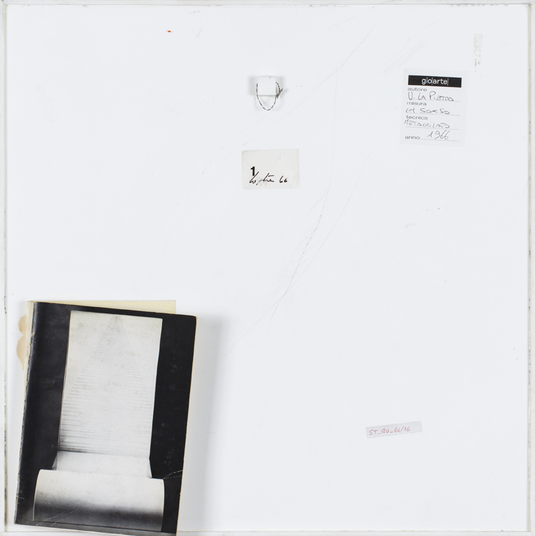 Firma, datazione, etichetta Galleria Gio Arte, Venezia e catalogo della Galleria Cadario, Roma (mostra personale di Ugo La Pietra del 1967) al retro
