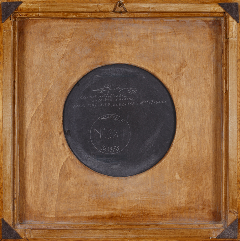 Firma, datazione, tecnica, misure e titolo al retro