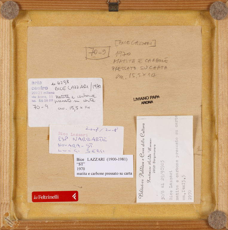 Etichetta della Fondazione Achille Marazza (NO) al retro
