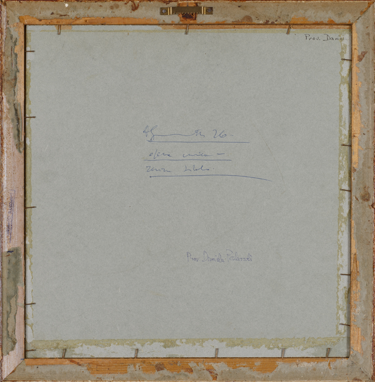 Firma, datazione, titolo e iscrizione "Opera Unica" al retro sul cartone protettivo
