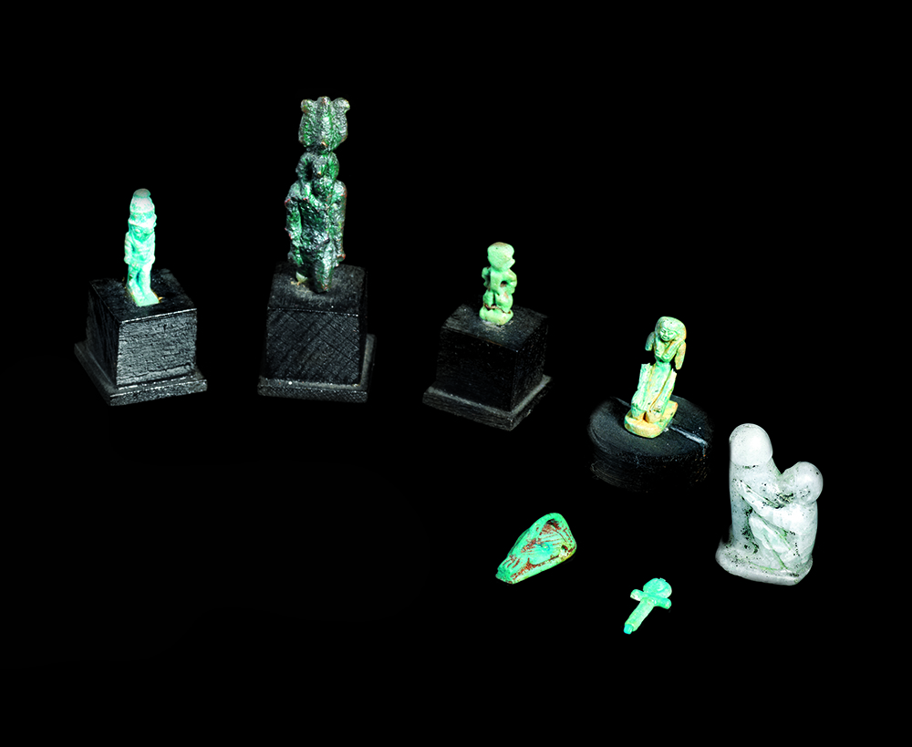 SETTE AMULETI EGIZI DATAZIONE: Epoca Tarda 716-30 a. C. MATERIA E TECNICA:...