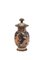 GRANDE OINOCHOE APULA CON COPERCHIO Forma 8 DATAZIONE: ultimo quarto del IV sec. a. C MATERIA E TECNICA: argilla figulina rosata, vernice nera lucente con riflessi metallici, suddipinture in bianco e giallo; modellata a tornio veloce Coperchio leggermente convesso con pomello cilindrico a terminazione troncoconica Oinochoe con orlo estroflesso e appiattito, collo cilindrico a profilo concavo distinto dal corpo ovoide mediante una solcatura, piede ad echino modanato con basso stelo, ansa a bastoncelli, fusi all’attacco inferiore e annodati in quello superiore impostati verticalmente dall’orlo alla spalla DECORAZIONE ACCESSORIA: sul collo grande rosetta fra due rami di alloro, sotto la scena figurata meandro ad onda sinistrorso, sotto l’ansa grande palmetta aperta a ventaglio fra girali, volute e infiorescenze; interamente verniciata ad eccezione dell’attacco con il piede e della parte inferiore del piede DECORAZIONE: coperchio: faccia superiore del pomello parzialmente verniciata, sulla spalla due palmette a ventaglio e girali contrapposte a due grandi rosette; oinochoe: scena di conversazione fra un giovane nudo, dai tratti anatomici accuratamente delineati, seduto di tre quarti a destra sul proprio mantello e retrospiciente, con una tenia nei capelli, una cetra nella mano destra ed un auto nella sinistra; dietro di lui una giovane donna seduta anch’essa di tre quarti su un masso e volta verso l’uomo con una phiale nella mano destra ed una situla nella sinistra. La giovane e` riccamente abbigliata con kekryphalos ricamato, stephane radiata, collana, armille e calzari ed indossa un lungo chitone plissettato; nel campo rosette e foglie d’edera cuoriformi STATO DI CONSERVAZIONE: integra PRODUZIONE: ceramica apula a figure rosse, White Sakkos Group DIMENSIONI: alt. cm 30; diam. bocca cm 13 PROVENIENZA: New Hermes Arte Antica, Arezzo CFR.: Principi, imperatori e vescovi. 2000 anni di storia a Canosa, a. c. di R. Cassano, Venezia, 1992, nn. 126, 127, p. 464 CFR.: A.D.Trendall, Red-figured Vases of South Italy and Sicily, London 1989, p.97-100, n. 255-259