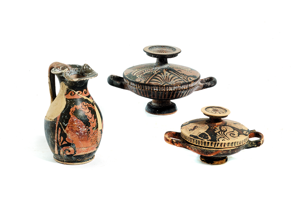 DUE LEKANIDES ED UN’OINOCHOE A FIGURE ROSSE DATAZIONE: fine IV sec. a. C....