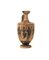LEKYTHOS ATTICA A FIGURE NERE DATAZIONE: fine VI sec. a. C. MATERIA E TECNICA: argilla figulina arancio, vernice nera lucente; suddipinture in bianco e paonazzo; dettagli resi a graffito. Alto bocchello di forma troncoconica rovescia, collo sottile cilindrico a profilo concavo, a raccordo fluido con la spalla appiattita, corpo ovoide allungato e rastremato verso il basso; ansa a nastro impostata verticalmente dal collo alla spalla, piede a disco DECORAZIONE ACCESSORIA: bocchello e ansa verniciati, spalla con falsa baccellatura e catena di palmette contrapposte; parte inferiore del corpo e superiore del piede verniciati; linea sotto la scena figurata; bordo e sotto del piede risparmiati DECORAZIONE: sul ventre corteo dionisiaco; il dio è raffigurato ammantato al centro della composizione, barbato, con corona di foglie d’edera sulla testa, retrospiciente e con un rython nella destra, mentre dalla mano sinistra partono una serie di tralci di vite con foglie ridotte a puntini; davanti a Dioniso un satiro, nudo e barbato danzante, dietro alla divinità una menade ed un altro satiro nudo e barbato sono anch’essi raffigurati danzanti STATO DI CONSERVAZIONE: ricomposta da frammenti con lacune PRODUZIONE: ceramica attica a figure nere, Leafless Group DIMENSIONI: alt. cm 23