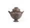 OLLETTA CON COPERCHIO VILLANOVIANA DATAZIONE: VII sec. a. C. MATERIA E TECNICA: impasto depurato bruno lucidato a stecca, ingubbiatura bruna-rossiccia, decorazione ad impressione e incisione, modellata a tornio veloce Olletta con orlo a colletto, spalla obliqua corpo quasi emisferico, piede a tromba, anse a bastoncello, impostate obliquamente sotto la spalla; coperchio con presa troncoconica, spalla appiattita e labbro verticale DECORAZIONE: interamente eseguita ad incisione, sul coperchio doppia catena di motivi a zig-zag, sull’olletta catena di denti di lupo con vertici verso il basso sulla spalla, sul ventre fascia di archetti penduli intrecciati cui fa seguito una linea a tremolo orizzontale PRODUZIONE: ceramica etrusca centro-meridionale STATO DI CONSERVAZIONE: integra DIMENSIONI: alt. cm. 17,7 PROVENIENZA: New Hermes Arte Antica, Arezzo