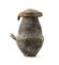 CINERARIO BICONICO CON COPERCHIO DATAZIONE: fine IX, inizi VIII sec. a. C. MATERIA E TECNICA: impasto bruno con ingubbiatura nerastra, lucidato a stecca, decorazione ad impressione; modellato a mano Cinerario con ampio orlo svasato, forma biconica con spalla arrotondata, fondo piatto; ansa a bastoncello, impostata obliquamente sulla massima espansione del corpo e ritorta verso l’alto; ciotola-coperchio in impasto rossiccio lucidato a stecca, labbro rientrante, vasca carenata, piede a disco, ansa a bastoncello verticale sull’orlo (2) DECORAZIONE: interamente eseguita con pettine a tre denti; sul collo meandro continuo, sulla spalla fila di coppelle impresse e serie di linee spezzate PRODUZIONE: ceramica etrusca meridionale STATO DI CONSERVAZIONE: integri DIMENSIONI: alt. cm 37; diam. bocca cm 16; coperchio alt. cm 10, diam. cm 19 Ciotola-coperchio non pertinente