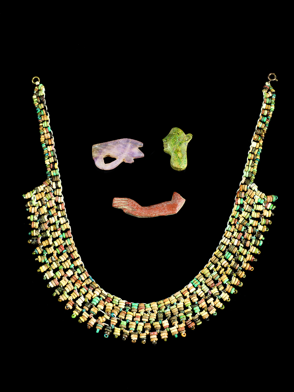 COLLANA LARGA E AMULETI EGIZI DATAZIONE: Epoca Tarda 664-30 a. C. MATERIA E...