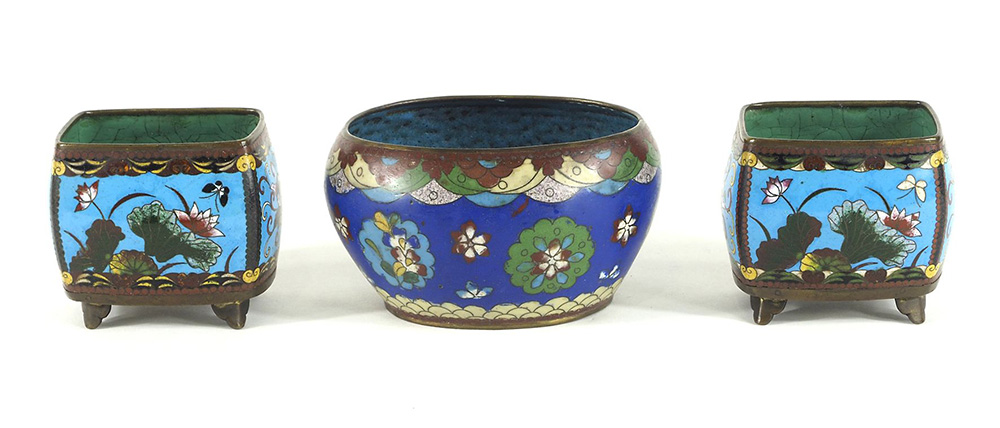 Lotto composto da 3 contenitori a lavorazione cloisonnè. Misure diverse.