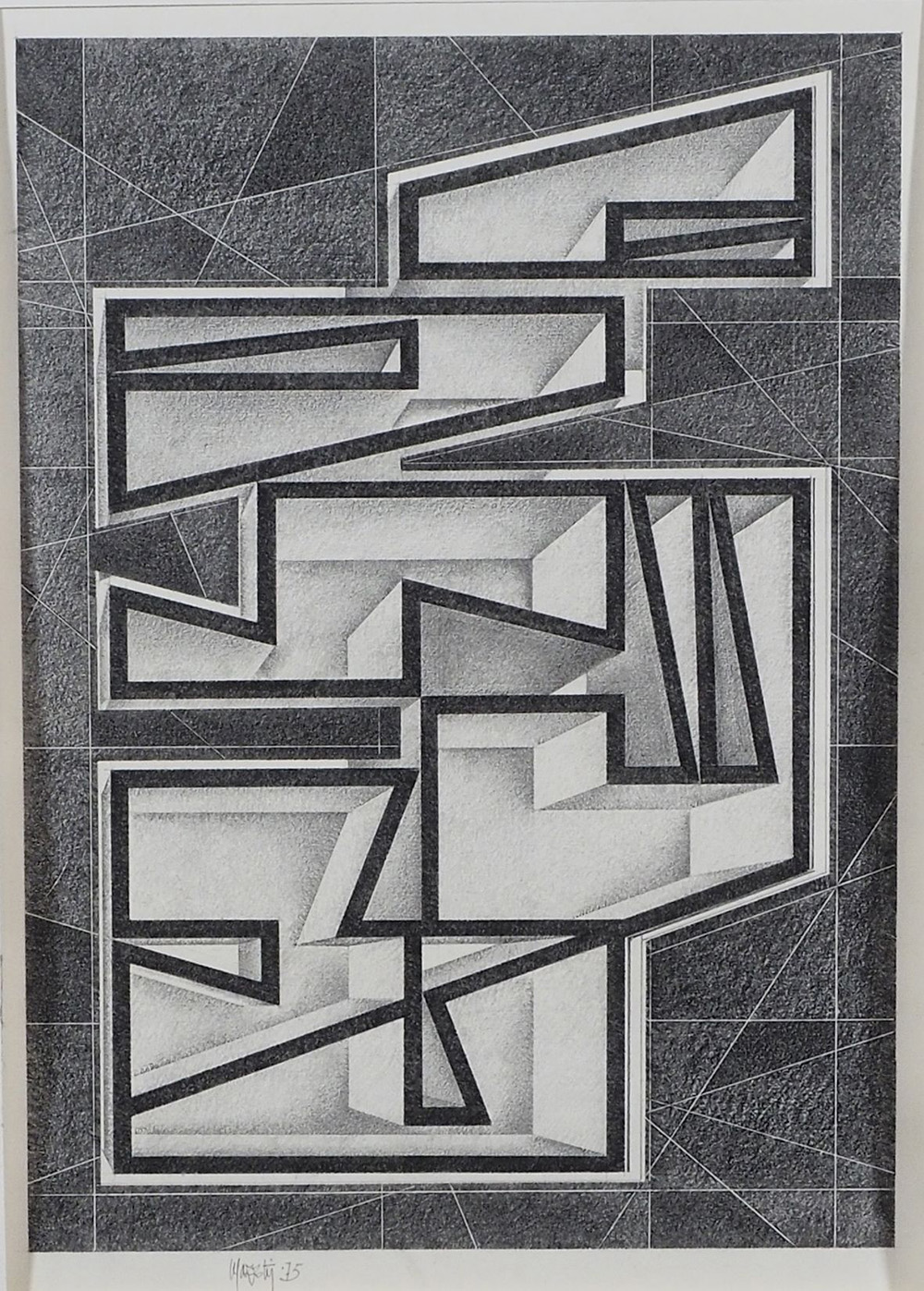 Pittore del '900 "Composizione" cm. 35x25 - grafite su carta Firmato b. a s. e datato '75.