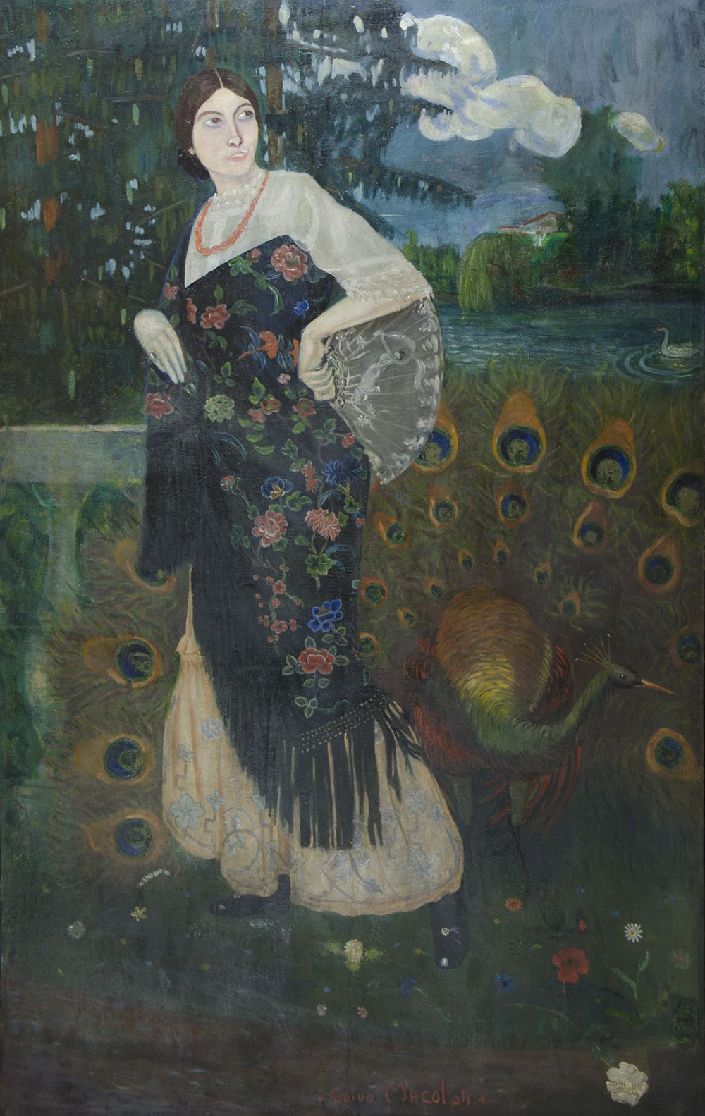 Pittore primi '900 "Le due bellezze" cm. 165x105 - olio su tela Firmato b. a d. Guido Macol..