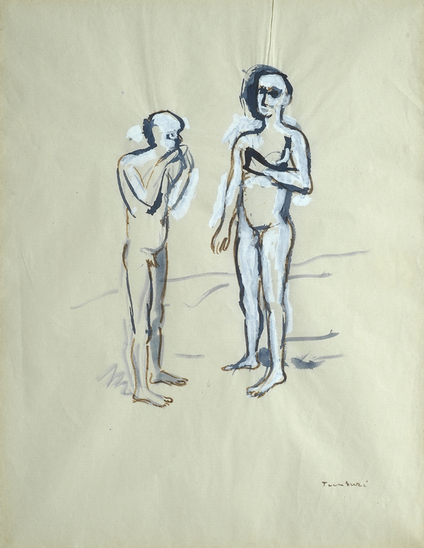 Orfeo Tamburi (Jesi, 1910 - Parigi, 1994) Figure China e biacca su carta, cm....