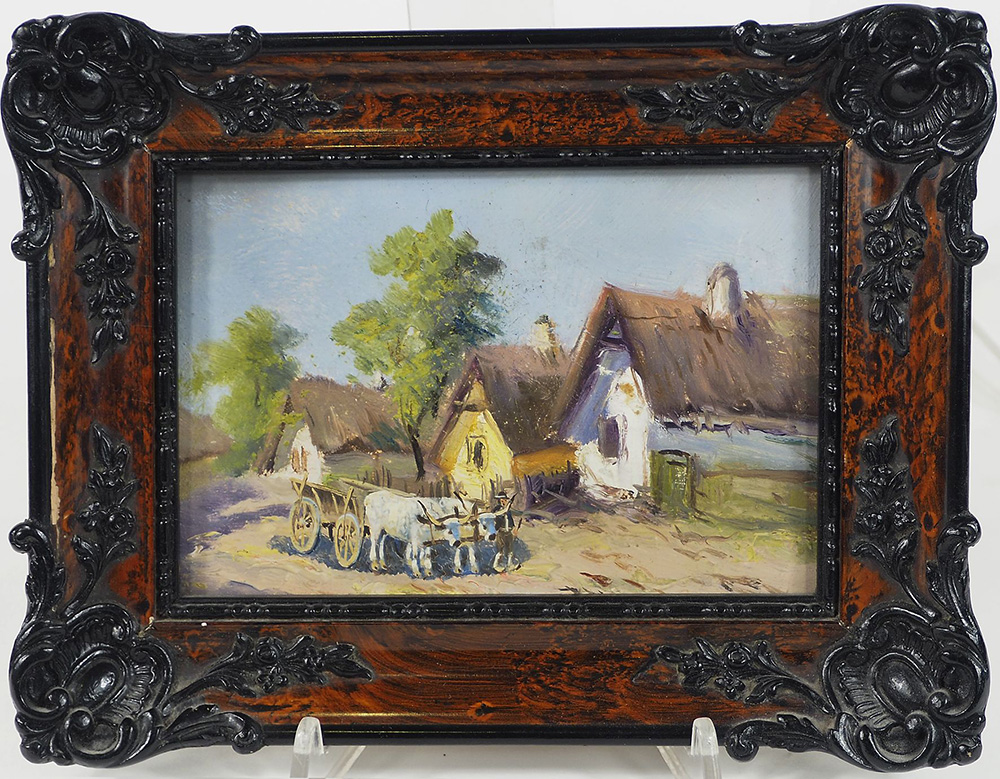 Pittore primi '900 Lotto di 2 oli su tavoletta raffiguranti paesaggi, cm. 13x18. Incorniciati.