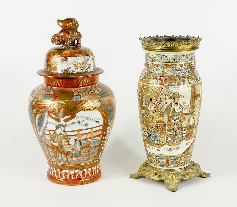 Lottodi 2 vasi decorati a motivi orientali. H. max cm. 35,