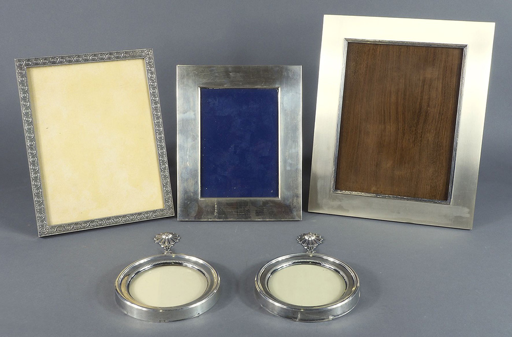 Lotto di 5 cornici da tavolo in argento. Misure diverse.