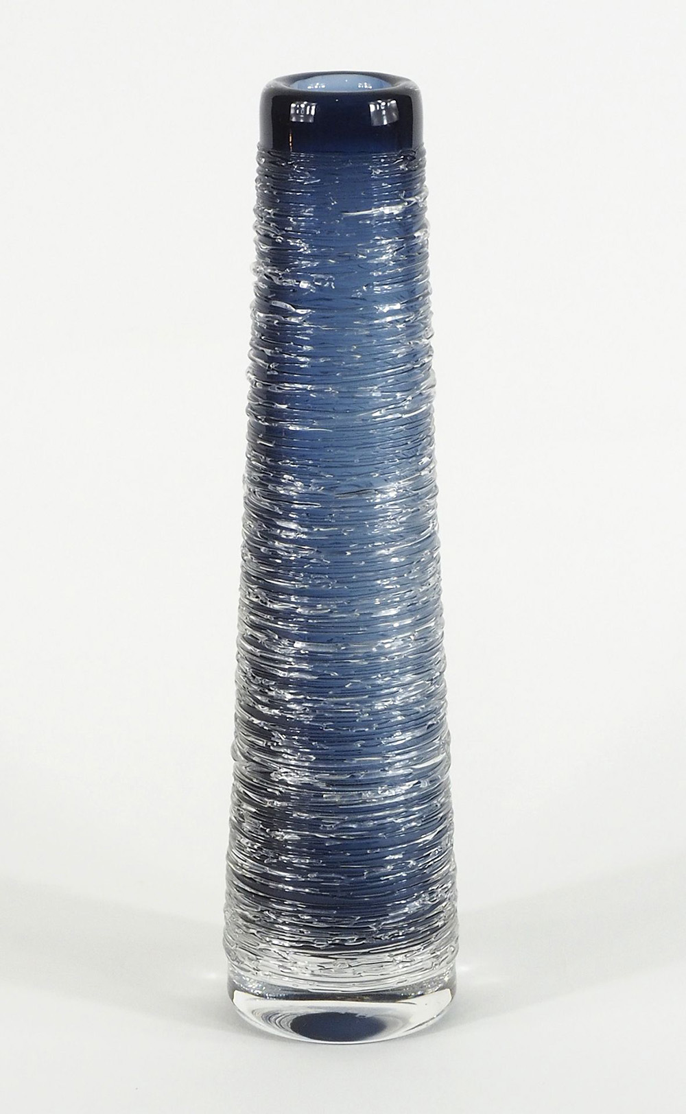 Vaso in vetro a obelisco interamente lavorato. Firma incisa sotto la base. H. cm. 33.
