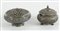 Lotto composto da 2 antiche scatole rotonde in argento con coperchi, lavorate...