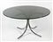 Lot 253 | Tavolo rotondo con piano in cristallo, base cromata. H. cm. 71, diam. cm. 130.