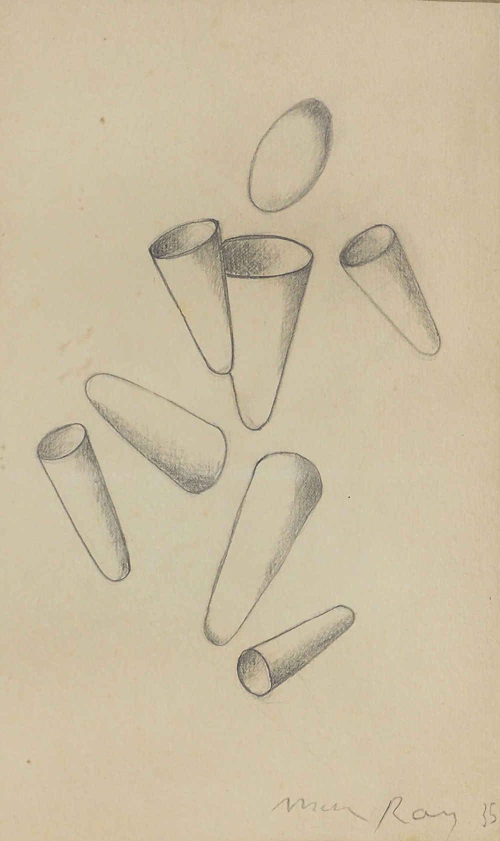 Pittore del XX secolo "Composizione di figura" cm. 36x22 - disegno a matita Iscritto Man Ray b. a d.