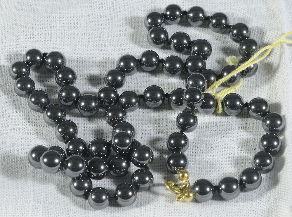 Collana in palline di ematite con chiusura in oro giallo.