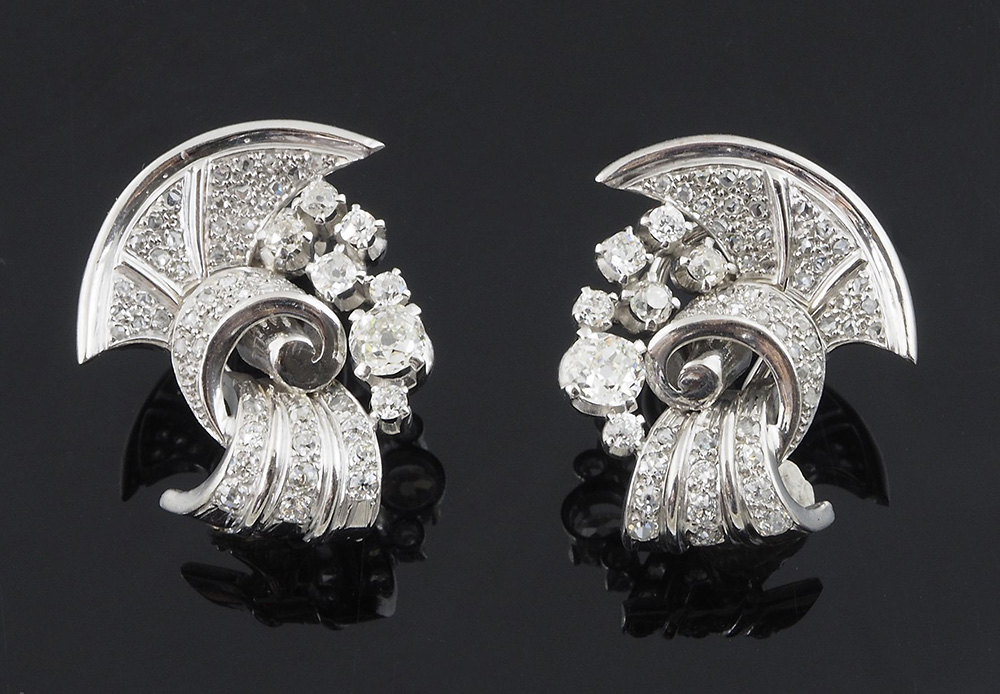 Orecchini in oro bianco forma geometrica con diamanti taglio brillante