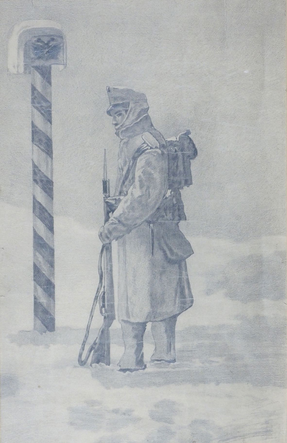 Pittore del XIX secolo "Soldato in riposo" cm. 34x53 - matita su carta