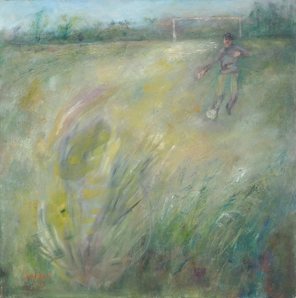 Livio Rosignano Pinguente (Pola) 1924-2015 "Il gioco del calcio" cm. 80x80 - olio su tela Firmato b. a s.