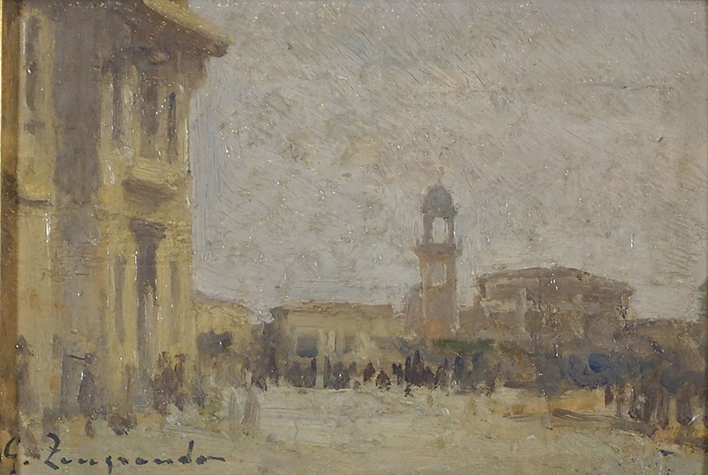 Giovanni Zangrando Trieste 1867-1941 "Trieste, la Pescheria" cm. 14x19 - olio...