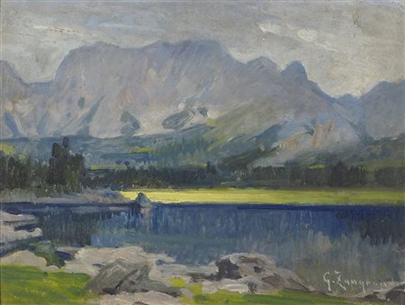 Giovanni Zangrando Trieste 1867-1941 "Laghetto tra i monti" cm. 26x34 - olio...