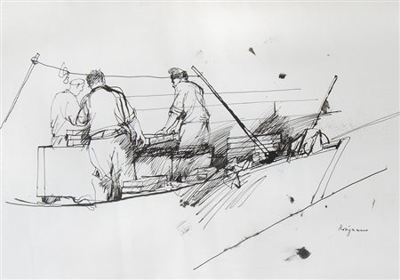 Livio Rosignano Pinguente (Pola) 1924-2015 "Venditori di pesce" cm. 34x47 -...
