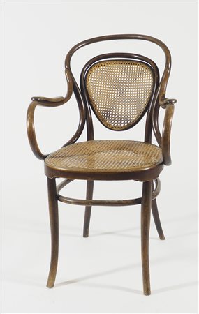 Lot 388 | Poltrona in legno curvo con seduta e schienale impagliati. Primi XX secolo.