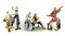 Carbet Carotti & Bettucci Lotto di 3 sculture in maiolica a smalti policromi raffiguranti personaggi. H. max cm. 26. (una sbeccata).