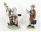 Carbet Carotti & Bettucci Lotto di 2 sculture in maiolica a smalti policromi raffiguranti personaggi con giornale. Eseguite per Otzens Chicago USA. H. max cm. 23.