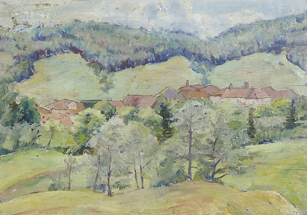 Lot 420 | Enrico Fonda Fiume 1892-Parigi 1929 "Paesino nel bosco" cm. 24x34 - olio su...