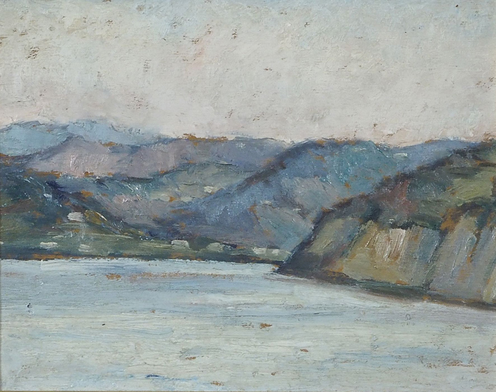 Enrico Fonda Fiume 1892-Parigi 1929 "Piccola marina" cm. 18x24 - olio su tavoletta Al retro timbro di provenienza.