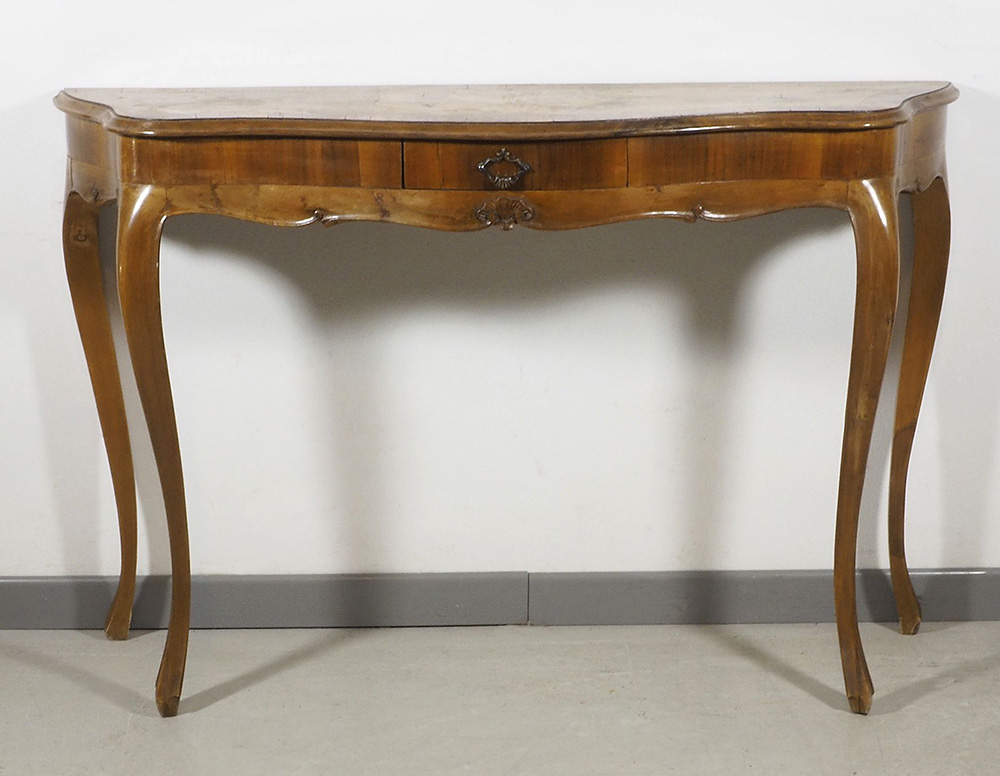 Lot 434 | Consolle con cassetto centrale su alte gambe mosse.