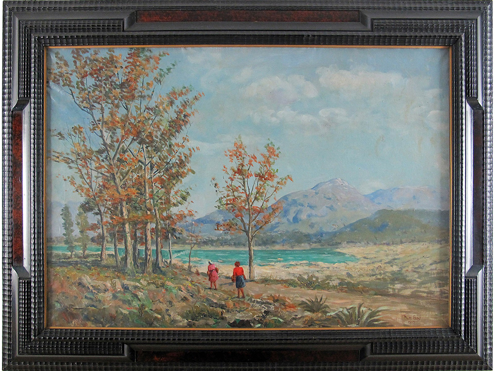 Rosario Di Fazio (1892-1958) Paesaggio con figure 70x100 cm Olio su tela