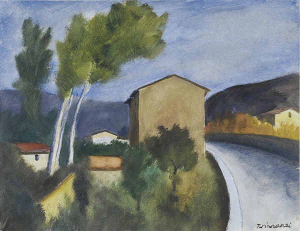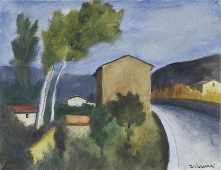 Nino Tirinnanzi (Greve in Chianti, 1923 - 2002) Paesaggio Olio su cartone, cm. 28,5x37 Firma in basso a destra. € 650/800