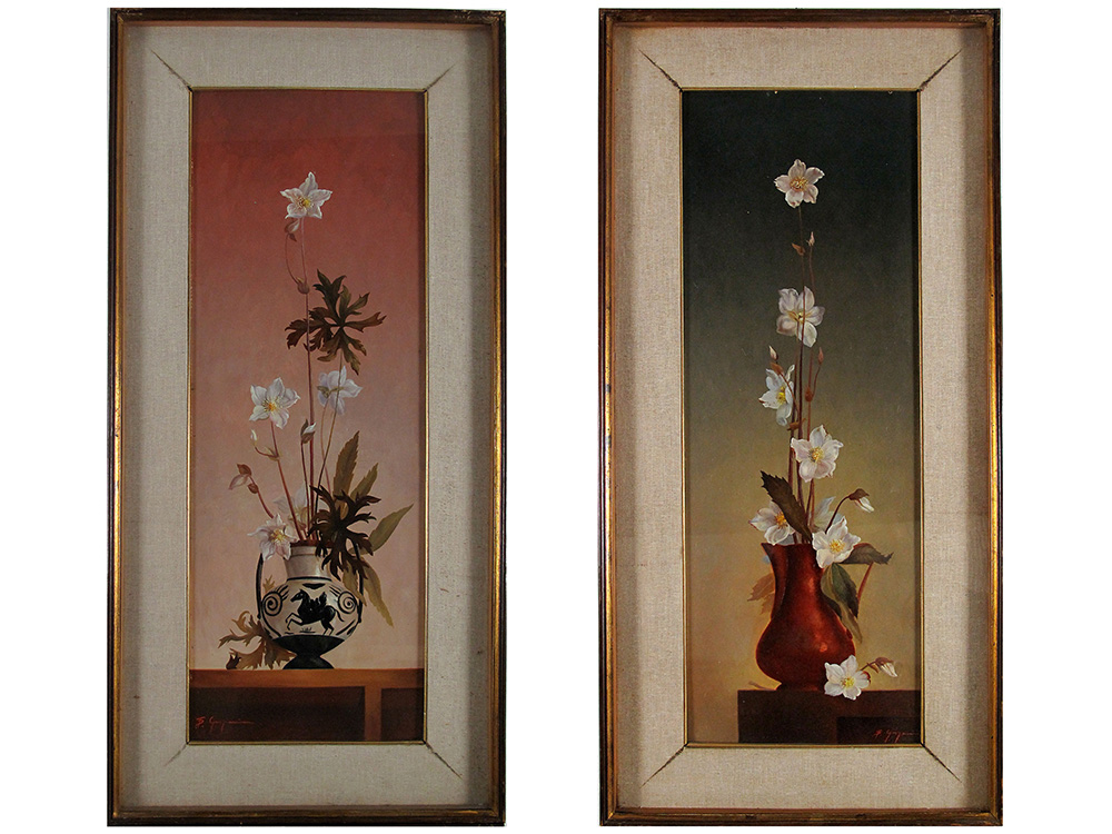 Firma illeggibile (XX secolo) Vaso con fiori 80x28,5 cm Olio su faesite