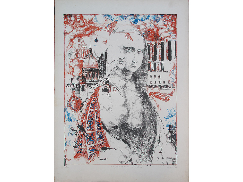 Firma illeggibile (XX secolo) "La giocoda de face et de pace" 70x50 cm Serigrafia