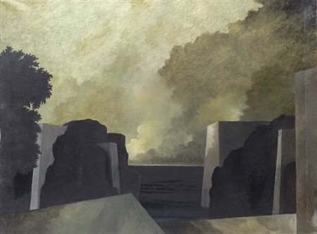 Tommaso Tommasi (Arbus, 1955) Paesaggio con architetture, 1994 Olio su tela,...