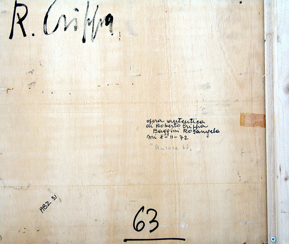 Roberto Crippa 1921, Monza (Mb) - 1972, Bresso (Mi) - [Italia] Aurora tecnica mista su tavola 80x65 cm 1967 firma dell’artista sul retro; opera con cornice dichiarazione di autenticità di Rosangela Baggini sul retro